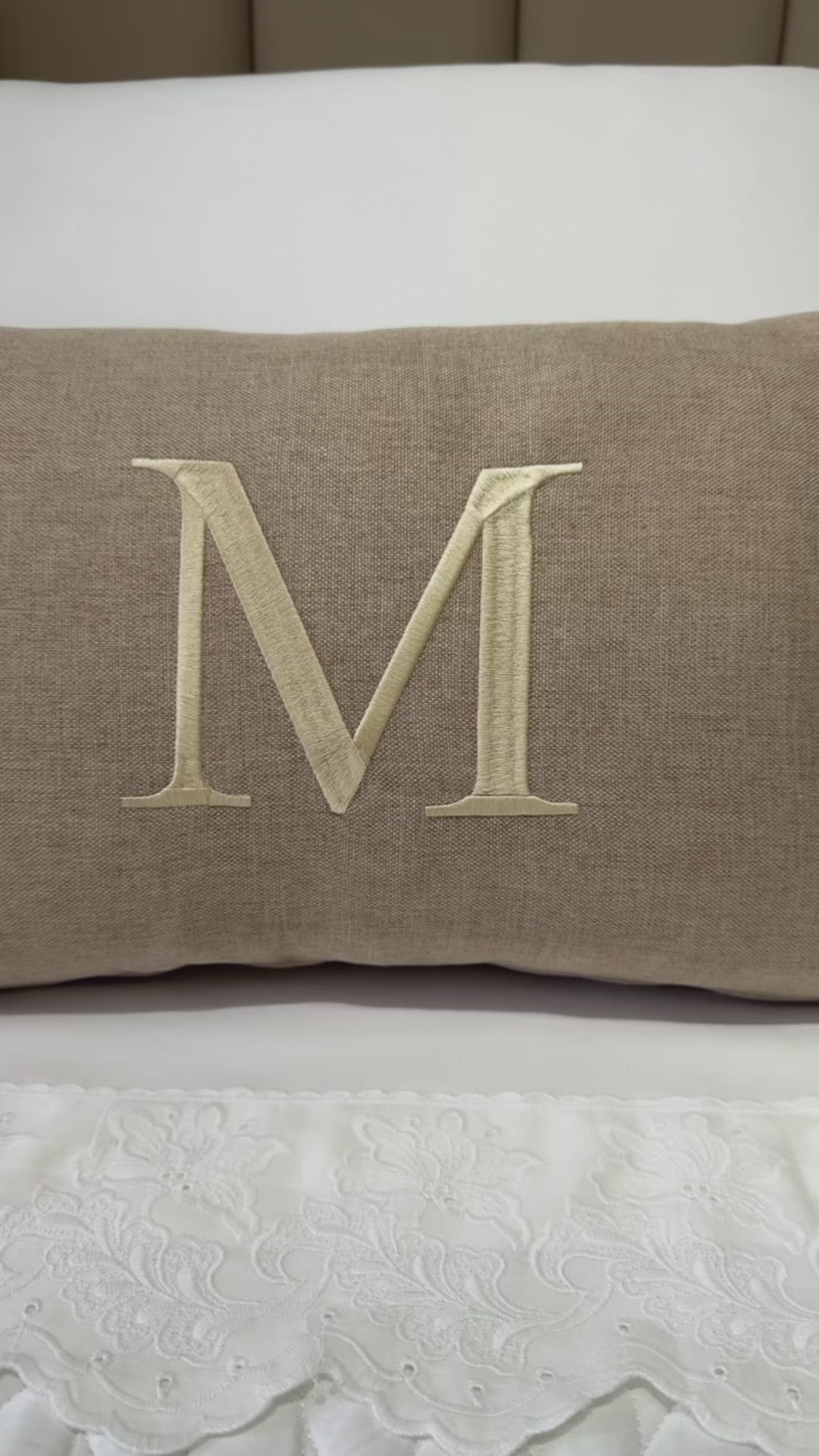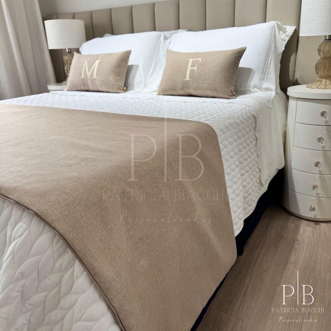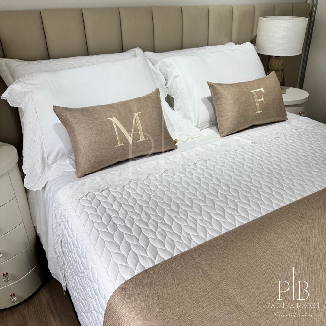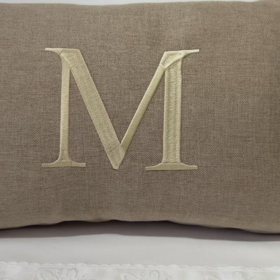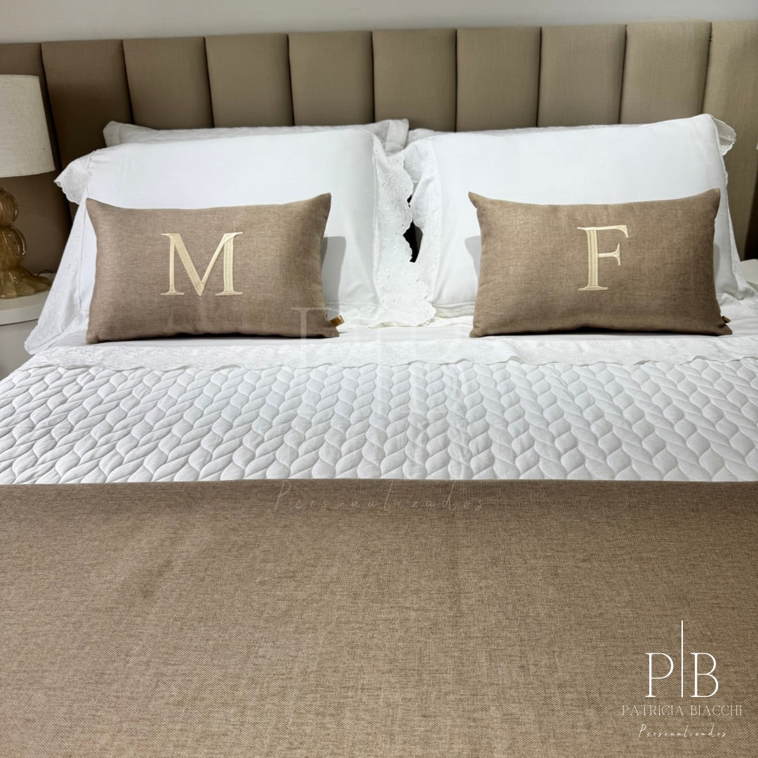 Almofada Individual com Inicial Single Linho Bege Bordado Champanhe