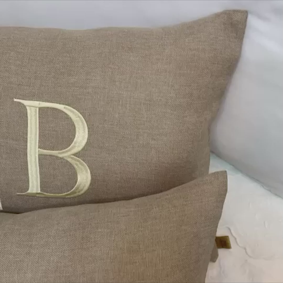 Almofada Individual com Inicial Married Linho Bege Bordado Champanhe