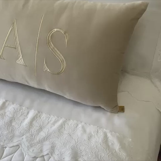 Par de Almofadas com Iniciais Married Veludo Bege Bordado Champanhe