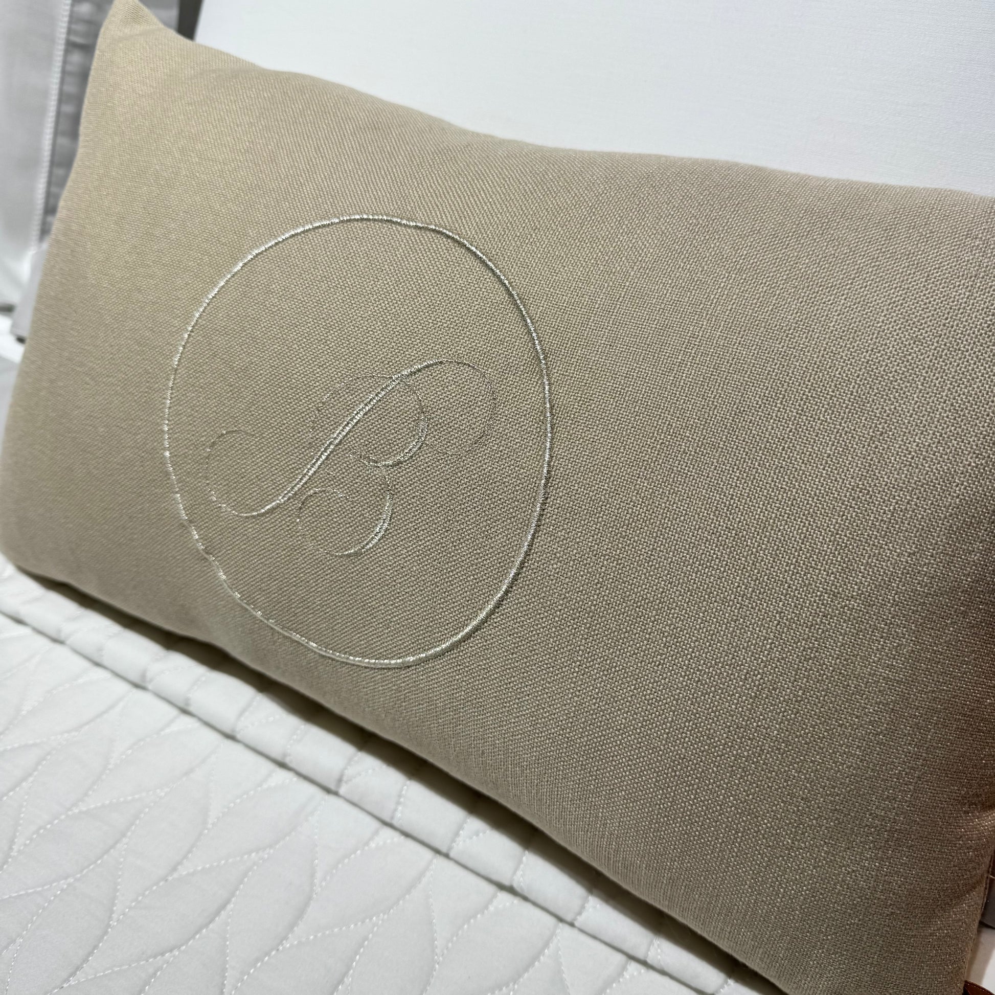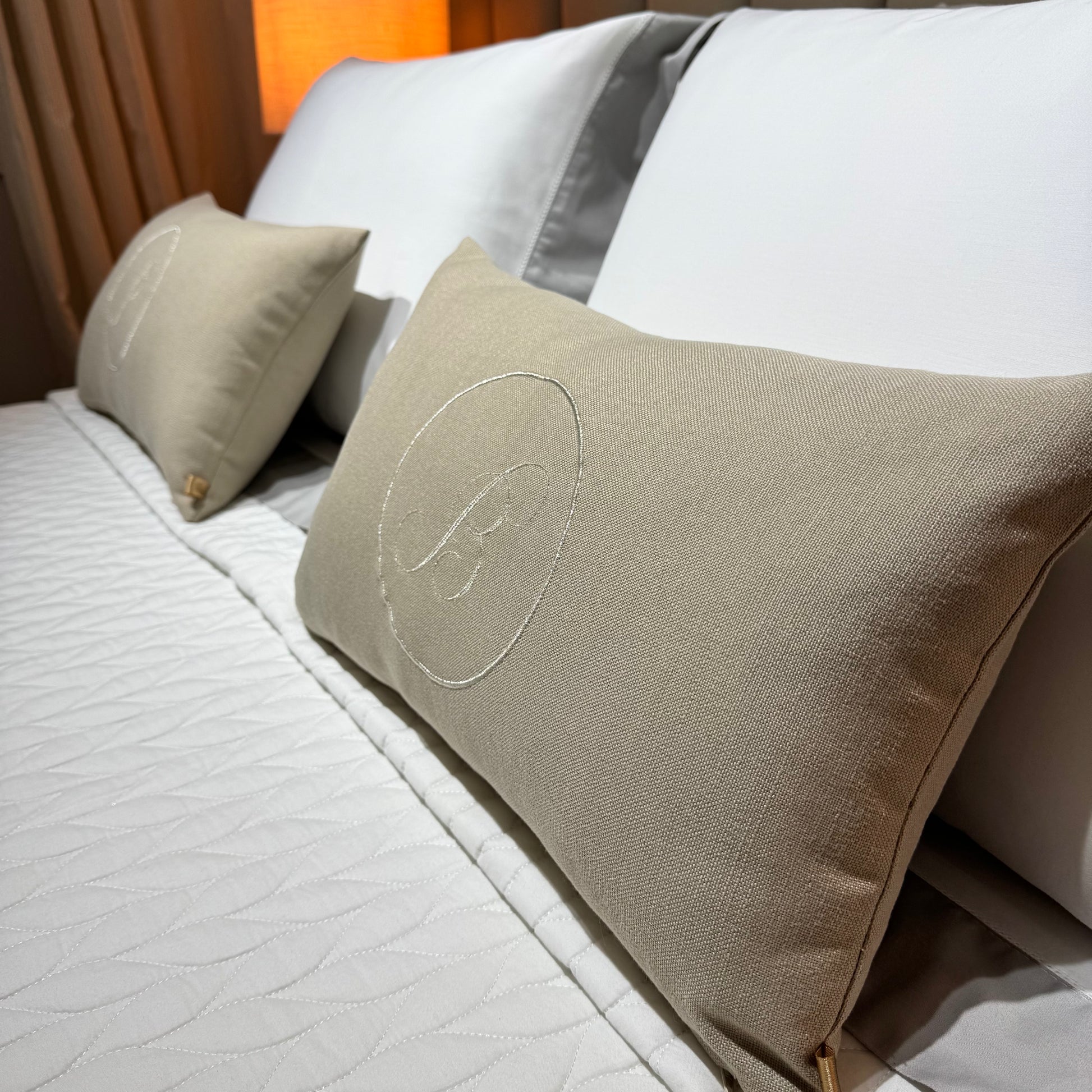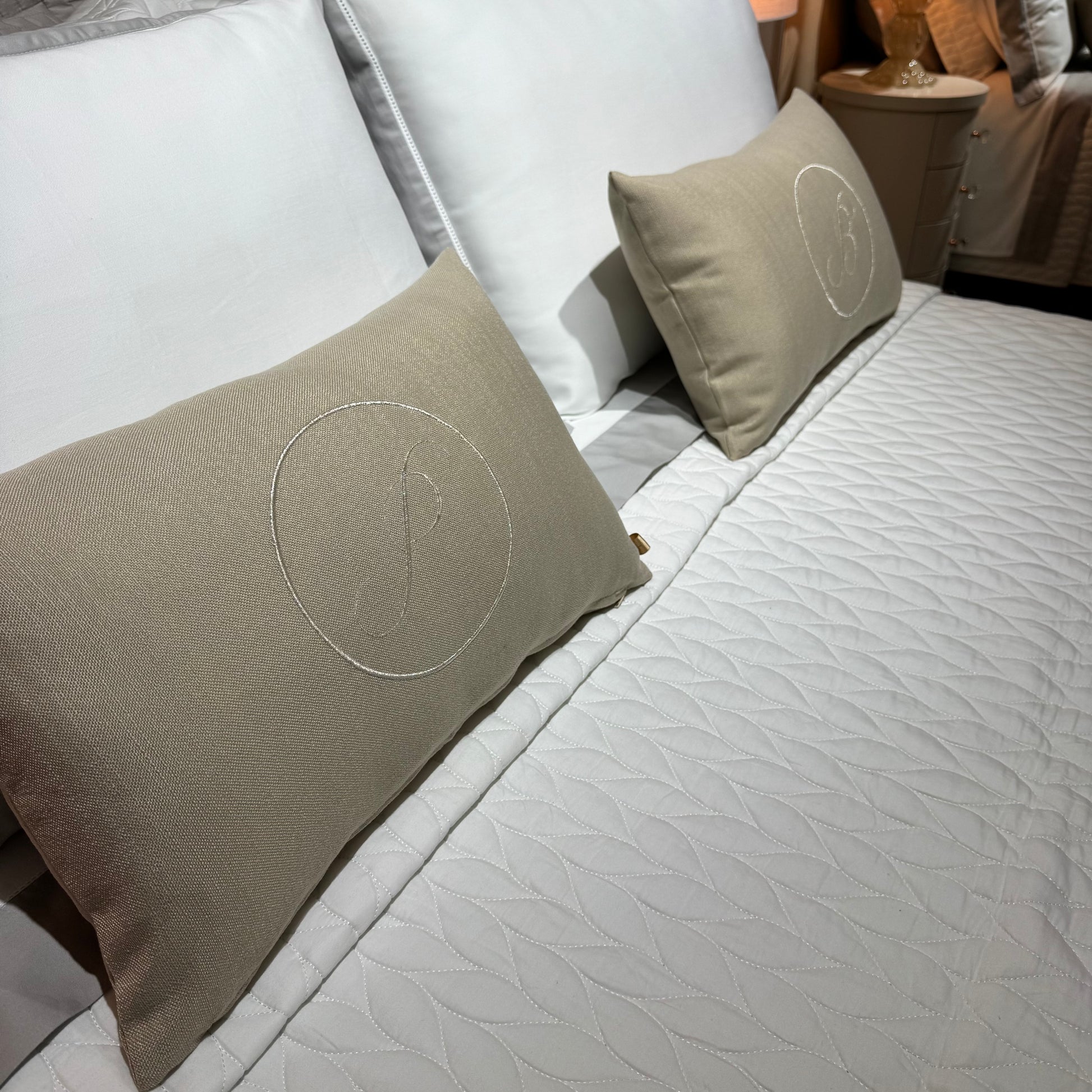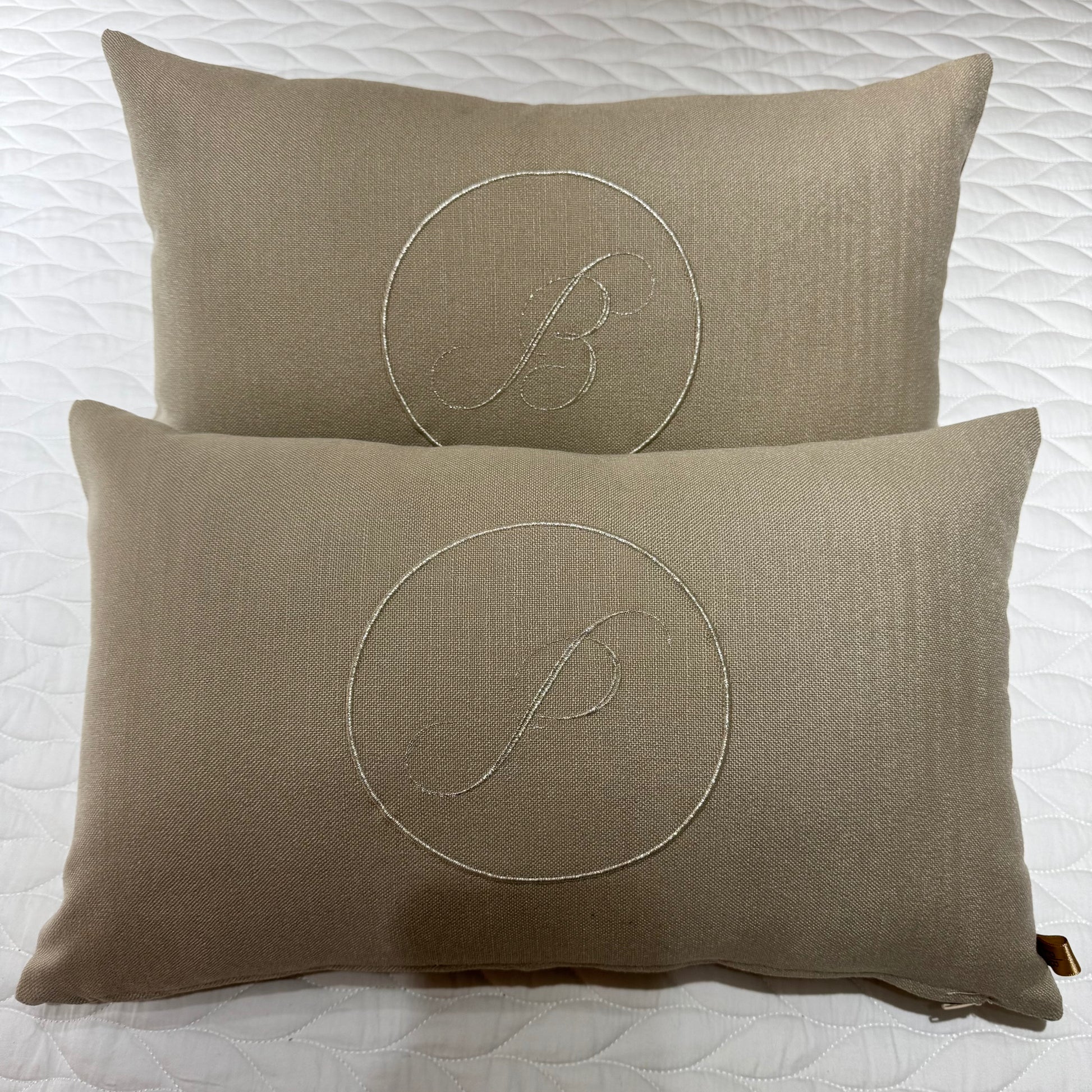 Par de Almofadas com Iniciais Alliance – Linho Bege Claro Bordado Platinum