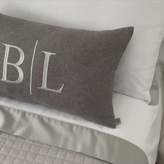 Par de Almofadas com Iniciais Married Linho Cinza Bordado Cinza Claro