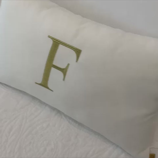 Par de Almofadas com Iniciais Single Veludo Branco Bordado Dourado