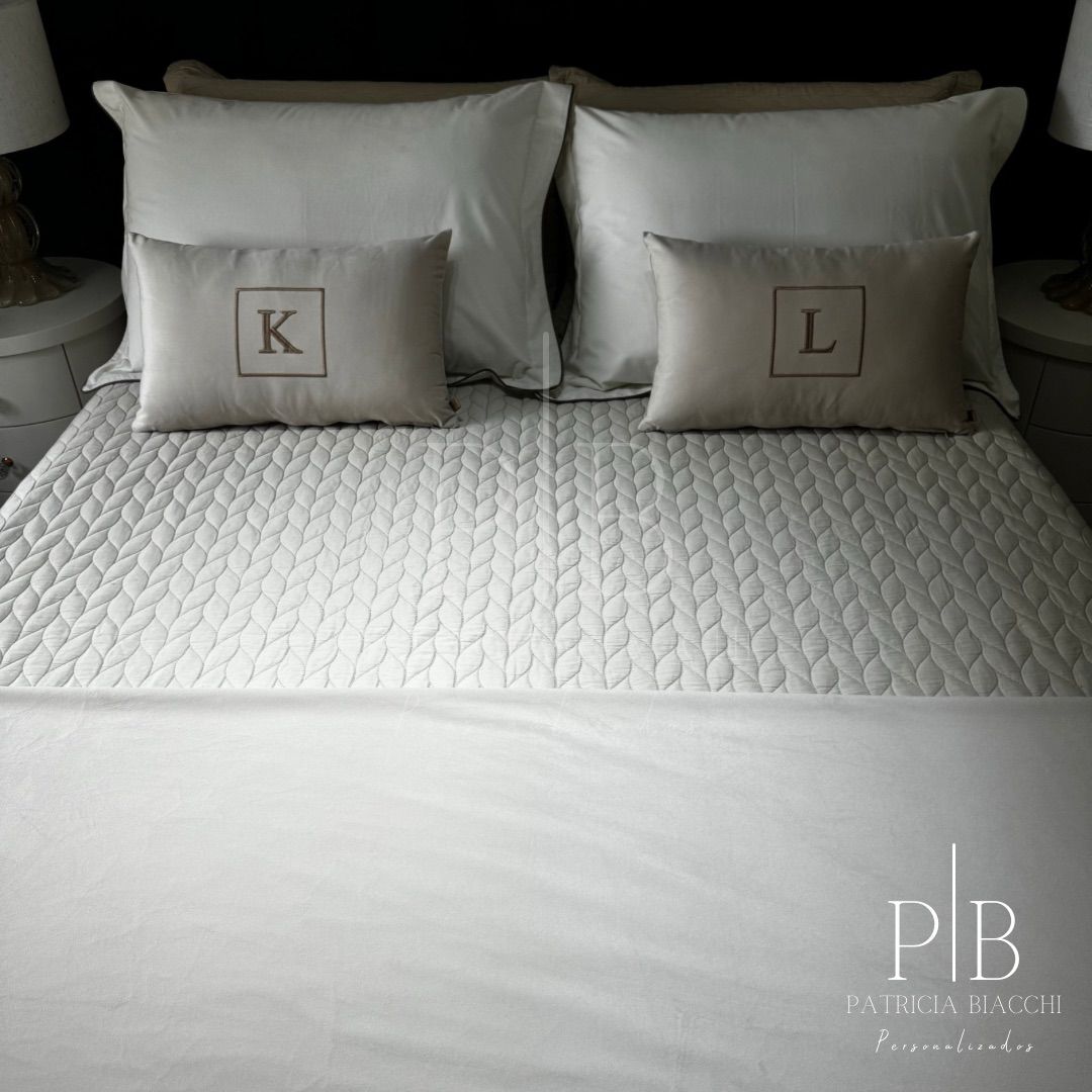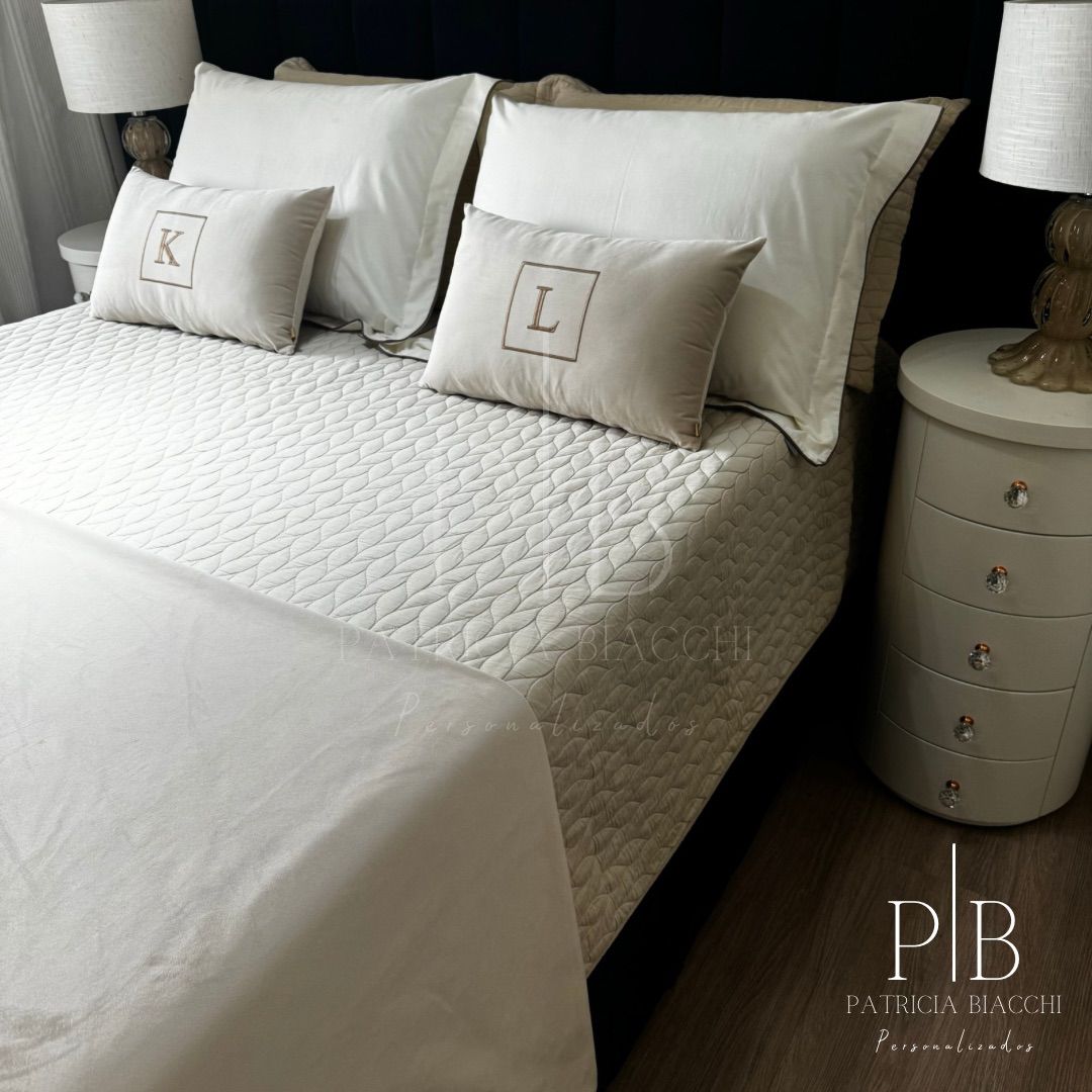 As almofadas personalizadas desmonstram o cuidado presente nos detalhes da casa. Dão um toque de identidade na medida, finalizando a arrumação da cama com sofisticação.